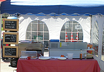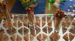 auch alles mitbringen; Essen, Getränke, Geschirr, und Deko.
